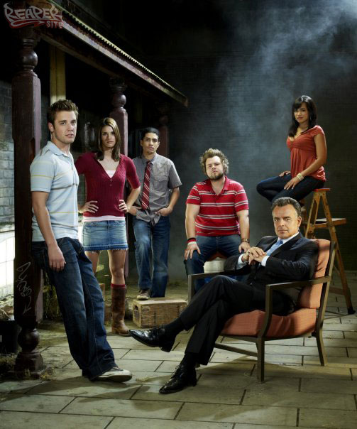 The cast of Reaper: Bret Harrison, Missy Peregrym, Rick Gonzalez, Tyler Labine, Ray Wise, and Valarie Rae Miller